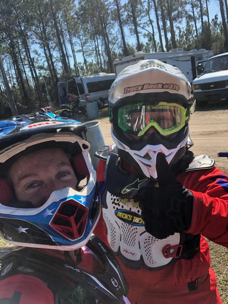 Tracy getting encouragement from pro Sx and MX rider, Tristan Lane.