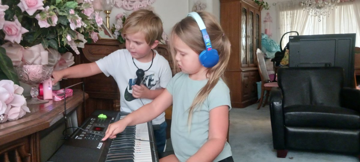 Grandbabies Memphis and Bristol are enjoying music time with Gramma.