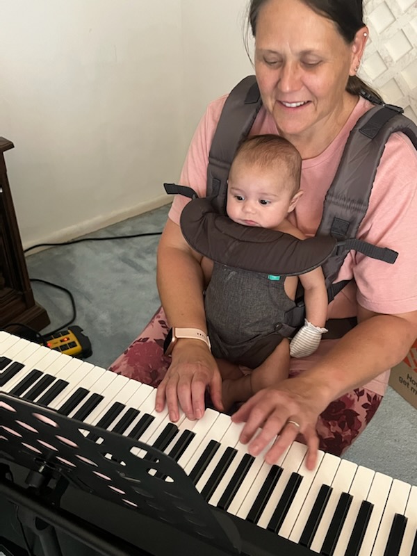 Youngest grandbaby, Brantley, playing piano with gramma.