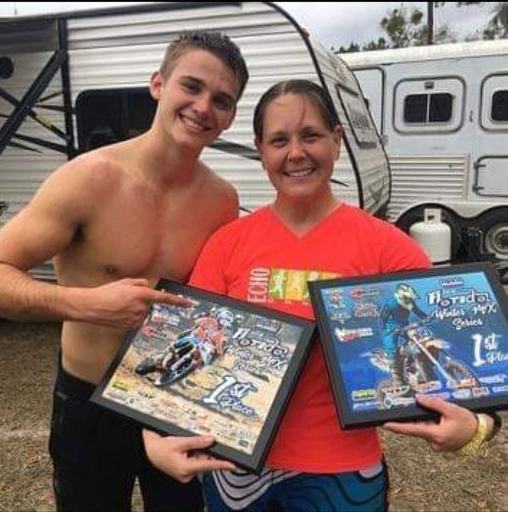 Tracy getting encouragement from pro Sx and MX rider, Tristan Lane.